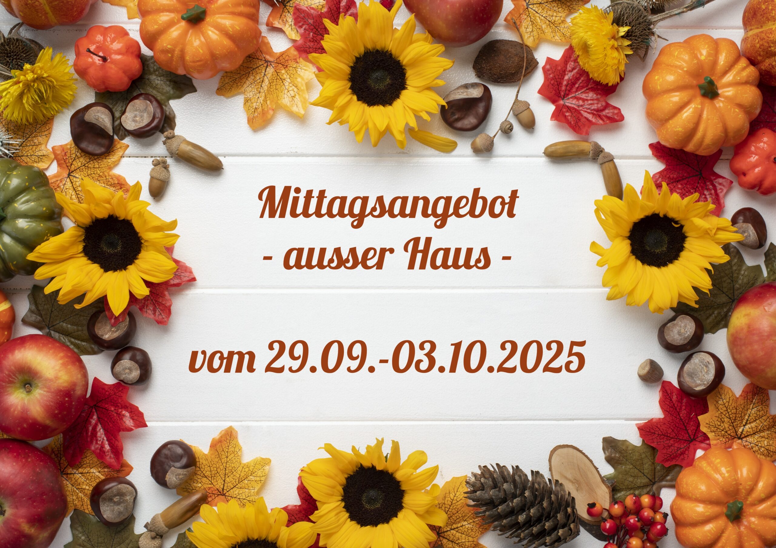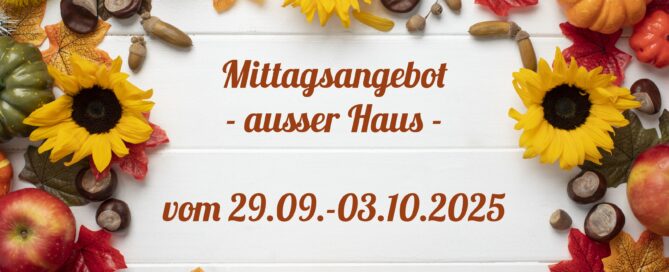 Mittagstisch vom 29.09.-03.10.2025 zum Abholen oder Liefern lassen Gallerie Mittagstisch vom 29.09.-03.10.2025 zum Abholen oder Liefern lassen Allgemein, Mittagstisch Mittagstisch vom 29.09.-03.10.2025 zum Abholen oder Liefern lassen silvana.hocher2025-09-25T13:28:53+02:00Donnerstag, 25. September, 2025|Allgemein, Mittagstisch| Weiterlesen