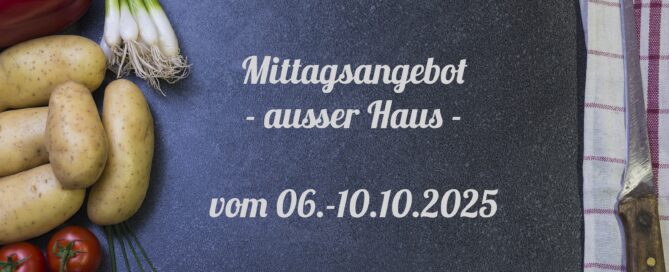 Mittagstisch vom 06.-10.10.2025 zum Abholen oder Liefern lassen Gallerie Mittagstisch vom 06.-10.10.2025 zum Abholen oder Liefern lassen Allgemein, Mittagstisch Mittagstisch vom 06.-10.10.2025 zum Abholen oder Liefern lassen silvana.hocher2025-09-30T11:48:03+02:00Dienstag, 30. September, 2025|Allgemein, Mittagstisch| Weiterlesen