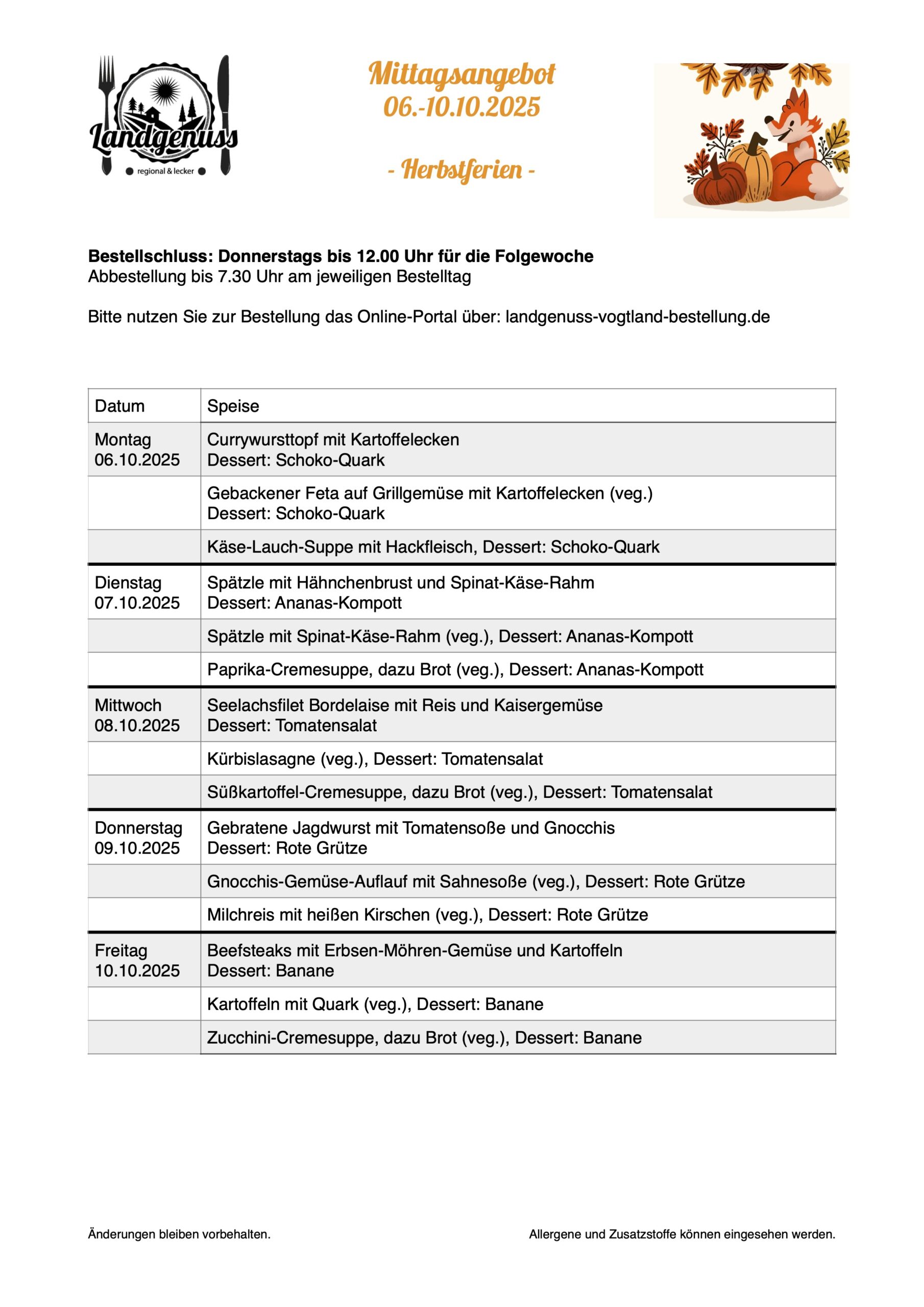 • Schul-Mittagsplan vom 06.-10.10.2025