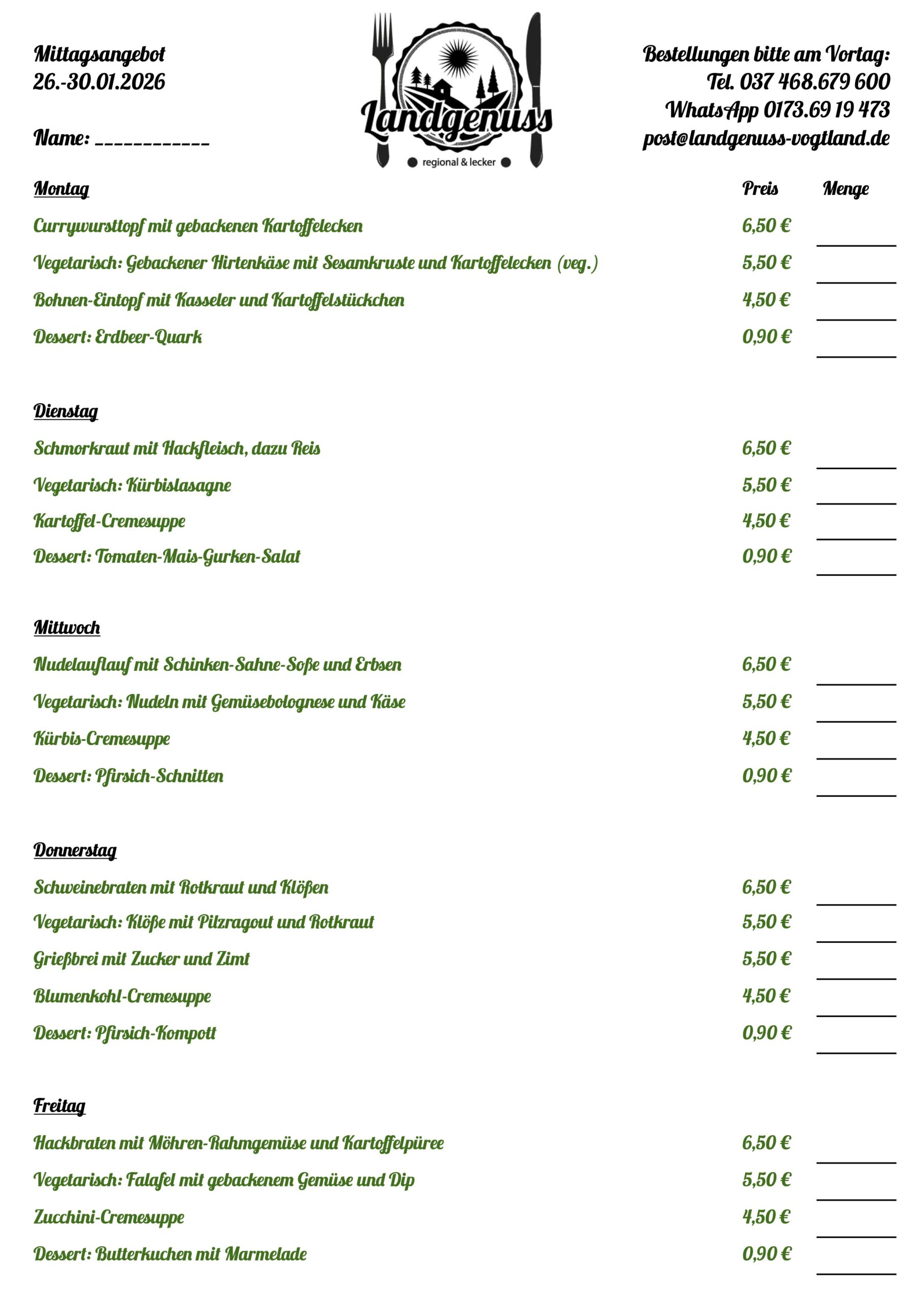 • Mittagstisch vom 26.01.-30.01.2026 außer Haus
