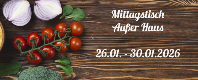 Mittagstisch vom 19.01.-23.01.2026 außer Haus Gallerie Mittagstisch vom 19.01.-23.01.2026 außer Haus Allgemein, Mittagstisch Mittagstisch vom 19.01.-23.01.2026 außer Haus silvana.hocher2026-01-12T10:27:40+01:00Montag, 12. Januar, 2026|Allgemein, Mittagstisch| Weiterlesen